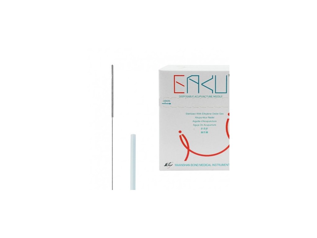 Akupunktúrne ihly EAKU sú vyrobené z kvalitnej kalenej ocele, majú oceľovú rukoväť kórejského typu - bez slučky. Ihly sú balené v 10 ihliach v blistrovom balení s vodiacim vodítkom. V balení je celkovo 1000 ihiel.